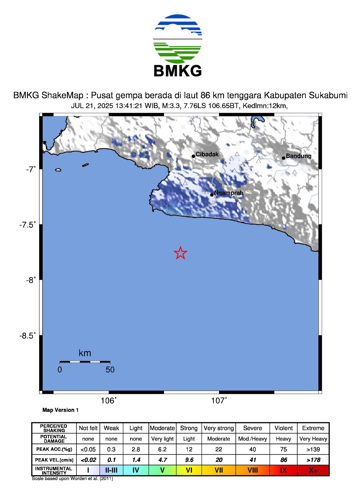 Senin, 21 Juli 2025, Siang yang relatif tenang di Kabupaten Sukabumi, Jawa Barat, dikejutkan oleh guncangan tiba-tiba. Pada pukul 13:41:21 WIB, sebuah gempa bumi tektonik berkekuatan Magnitudo 3,3 mengguncang wilayah tersebut, memberikan sensasi getaran yang terasa hingga ke beberapa pelosok desa.