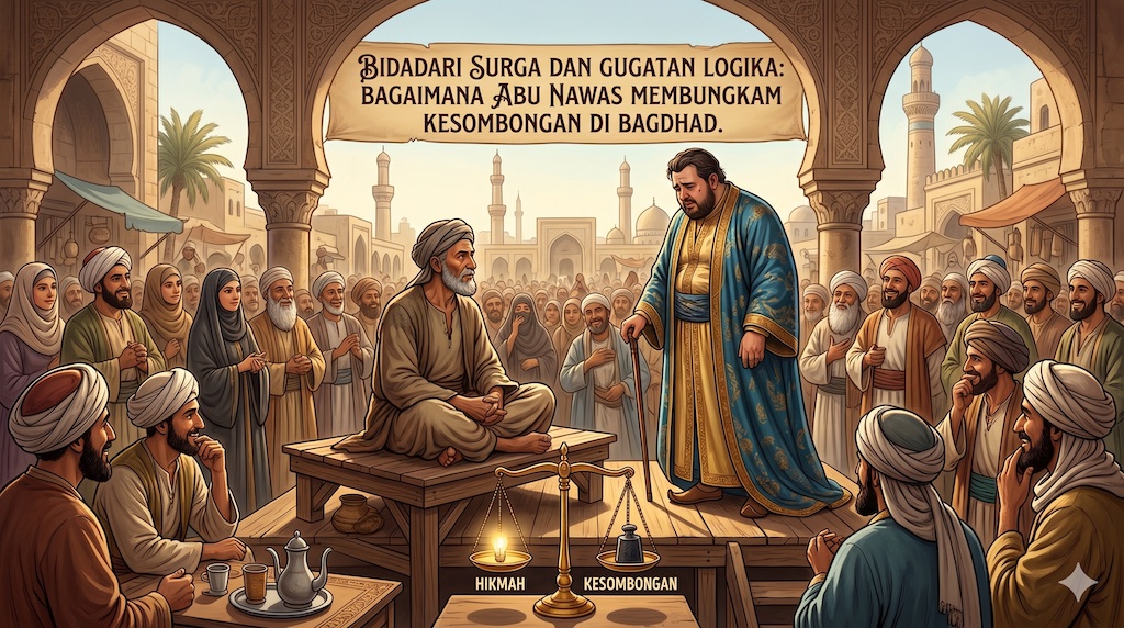 Di jantung peradaban abad ke-8, Pasar Baghdad yang biasanya riuh oleh tawar-menawar permadani dan rempah-rempah mendadak berubah menjadi panggung drama intelektual yang menegangkan. Sebuah pertanyaan provokatif meletus dari atas tumpukan peti kayu, memicu kegemparan yang nyaris membelah opini masyarakat: “Jika pria mendapatkan bidadari di surga, lalu wanita dapat apa? Apakah Tuhan tidak adil?”