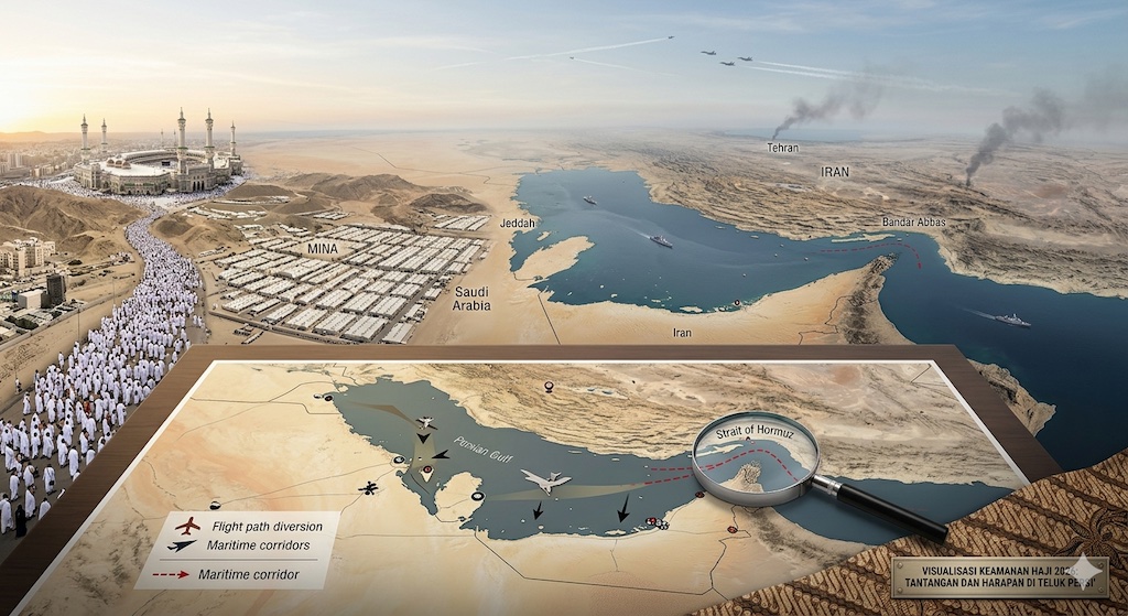Wartapilihan.com, Jakarta– Di satu sisi, jutaan umat Islam bersiap memenuhi panggilan suci ke Tanah Haram; di sisi lain, deru mesin tempur dalam konflik segitiga antara Amerika Serikat, Israel, dan Iran mengancam stabilitas salah satu jalur paling vital di dunia.