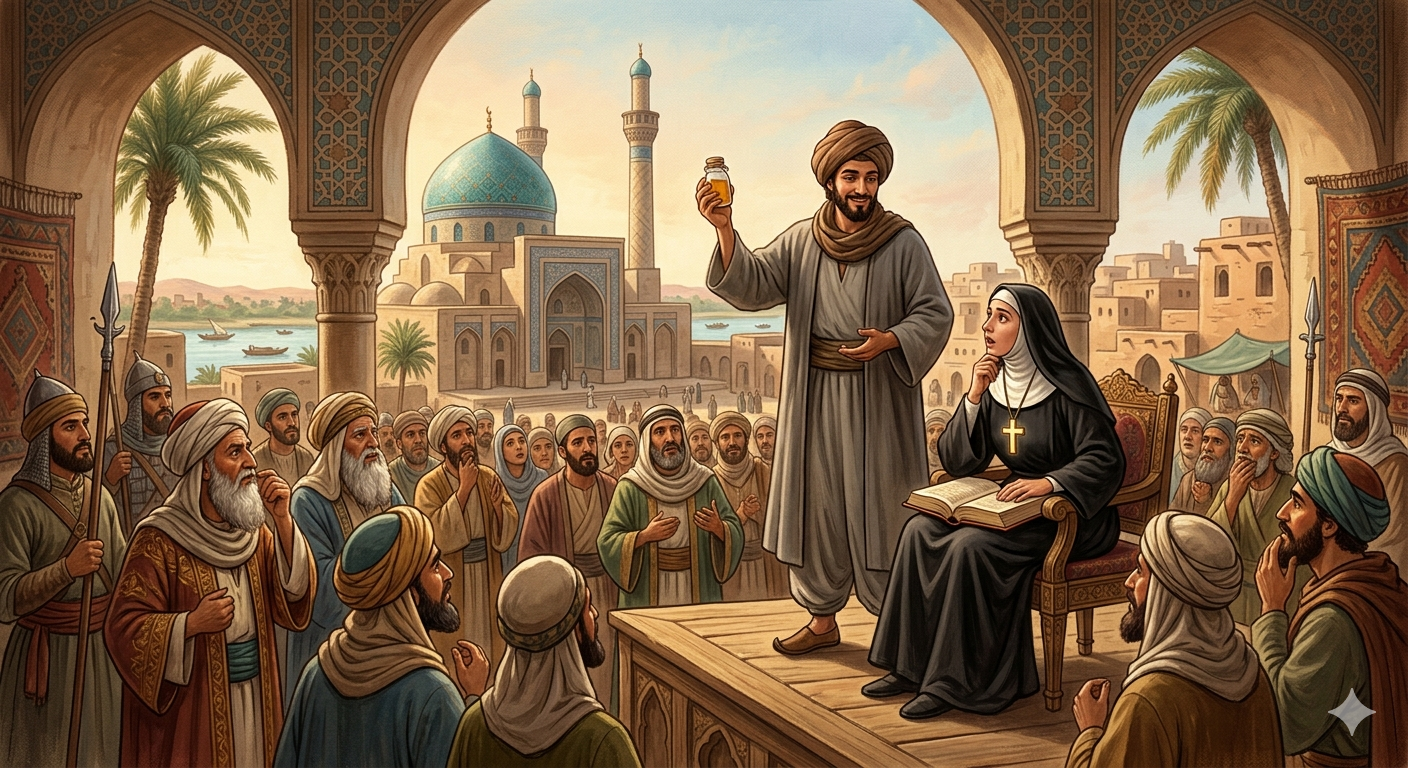 Wartapilihan.com, BAGHDAD – Sebuah peristiwa besar terjadi ketika seorang biarawati terpelajar dari negeri seberang tiba di gerbang kota, membawa tantangan intelektual terbuka yang sempat membungkam para ulama dan cendekiawan di pusat peradaban dunia tersebut.