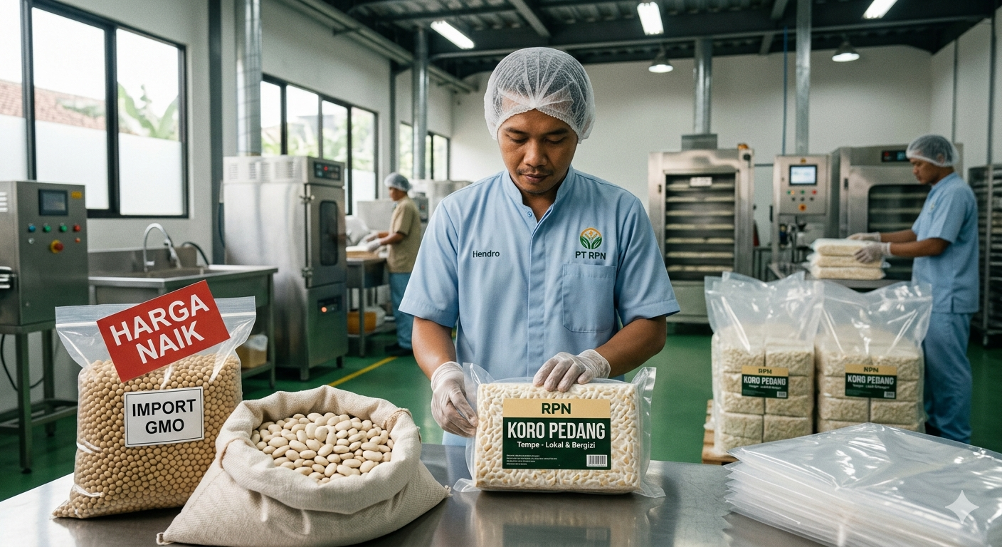 Di tengah kegelapan pasar kedelai, secercah harapan datang dari lahan-lahan lokal. Kacang koro pedang kini mulai naik kelas. PT Rumah Pangan Nusantara, yang telah lama menginisiasi produksi tempe berbasis koro pedang, membuktikan bahwa komoditas ini memiliki potensi luar biasa.