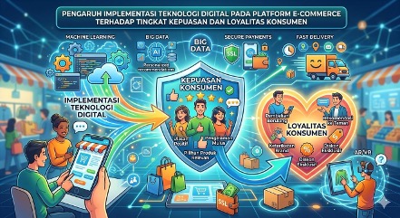Implementasi teknologi digital pada e-commerce Indonesia (2023-2025) terbukti berpengaruh signifikan terhadap kepuasan dan loyalitas konsumen. Fitur interaktif seperti live streaming dan rekomendasi AI meningkatkan pengalaman belanja, sementara keandalan sistem dan keamanan data menjadi fondasi utama loyalitas. Masalah utama yang muncul adalah switching behavior konsumen akibat ketidakpuasan pada kecepatan teknis dan respon layanan. Dengan demikian, teknologi yang user-centric dan aman adalah kunci memenangkan loyalitas di era ekonomi digital yang semakin kompetitif.