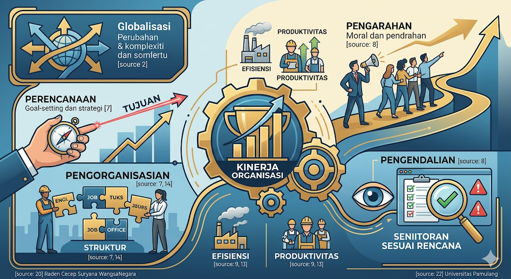 Di tengah arus globalisasi yang kian kompetitif, organisasi masa kini dituntut untuk tidak sekadar bertahan, tetapi juga tangkas dalam beradaptasi dengan perubahan yang serba cepat. Dalam dinamika ini, peran manajemen muncul sebagai pilar utama yang menentukan hidup-matinya sebuah organisasi serta efektivitas kinerjanya.